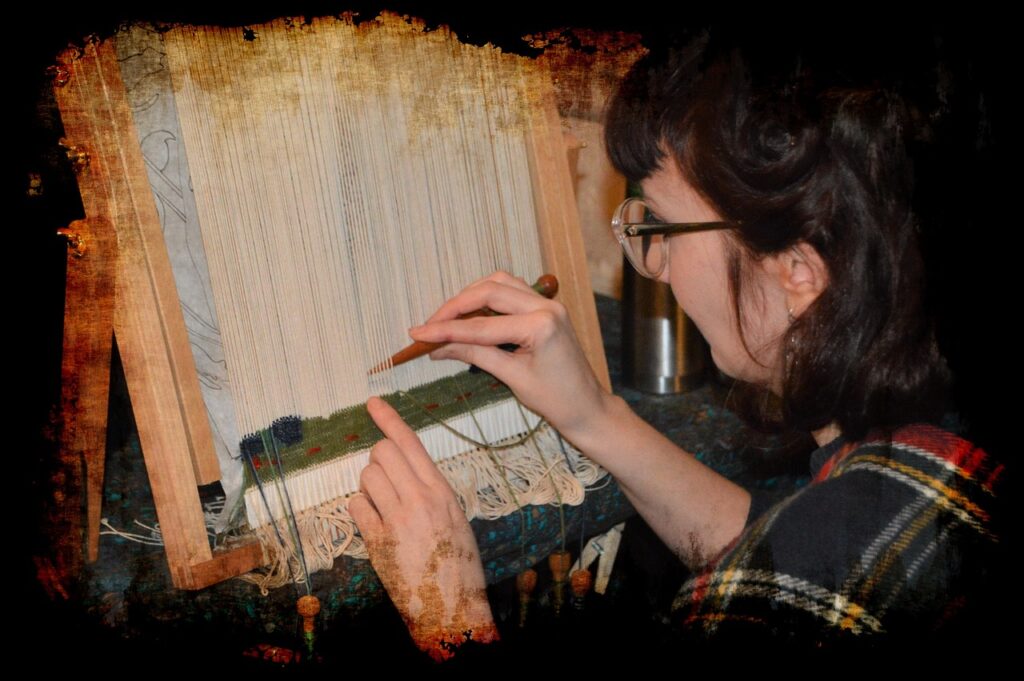 So, I’ve been weaving this virtual tapestry. It’s complicated–threads of different colors and textures. Ribbons and yarns. Beads and shells. I’ve worked my way to the 75% mark of my Young Adult novel where the action presses on to the climax. Time to get the vague notions I had for the denouement to come together in fine detail.